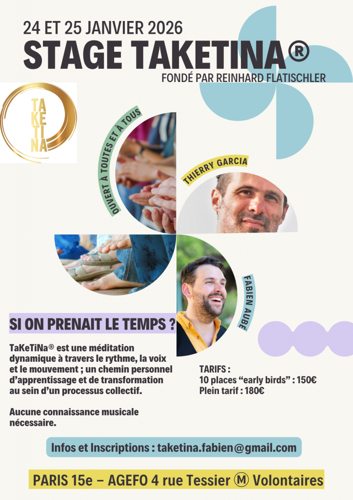 Détails et inscriptions : https://www.billetweb.fr/taketina-sessions-hebdomadaires